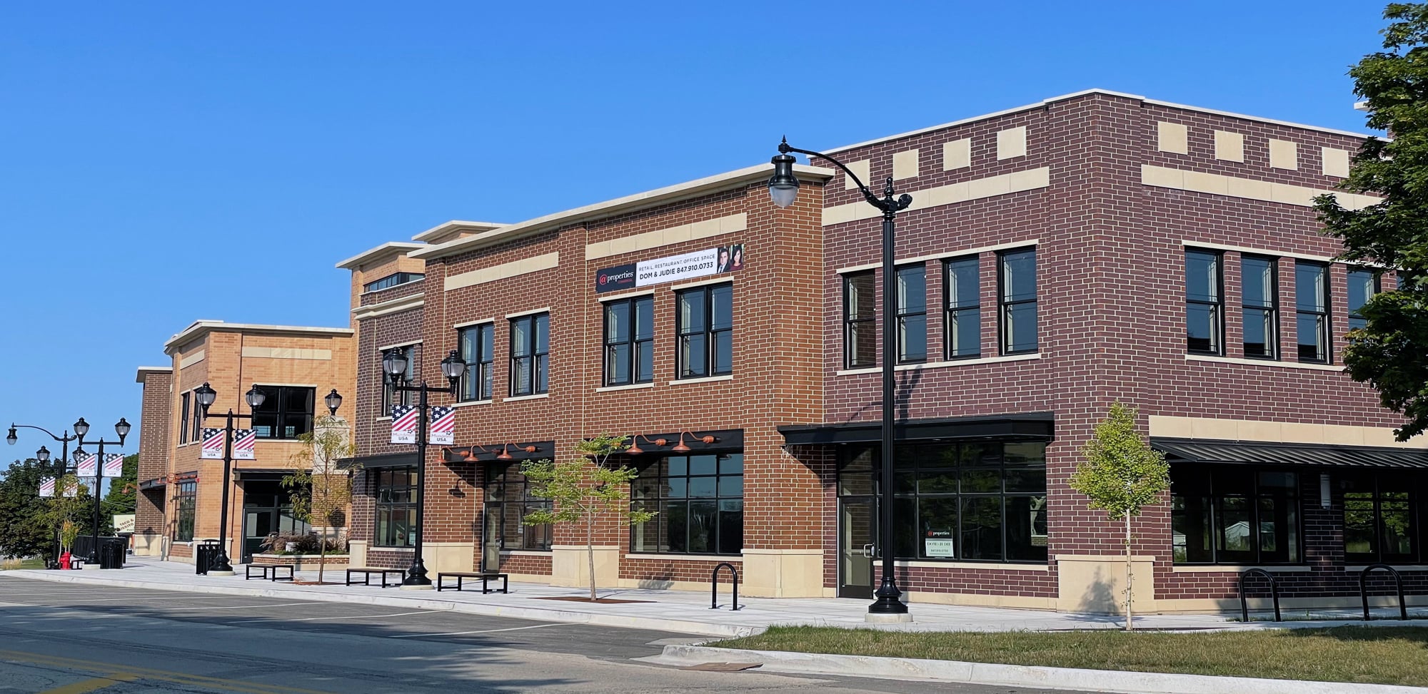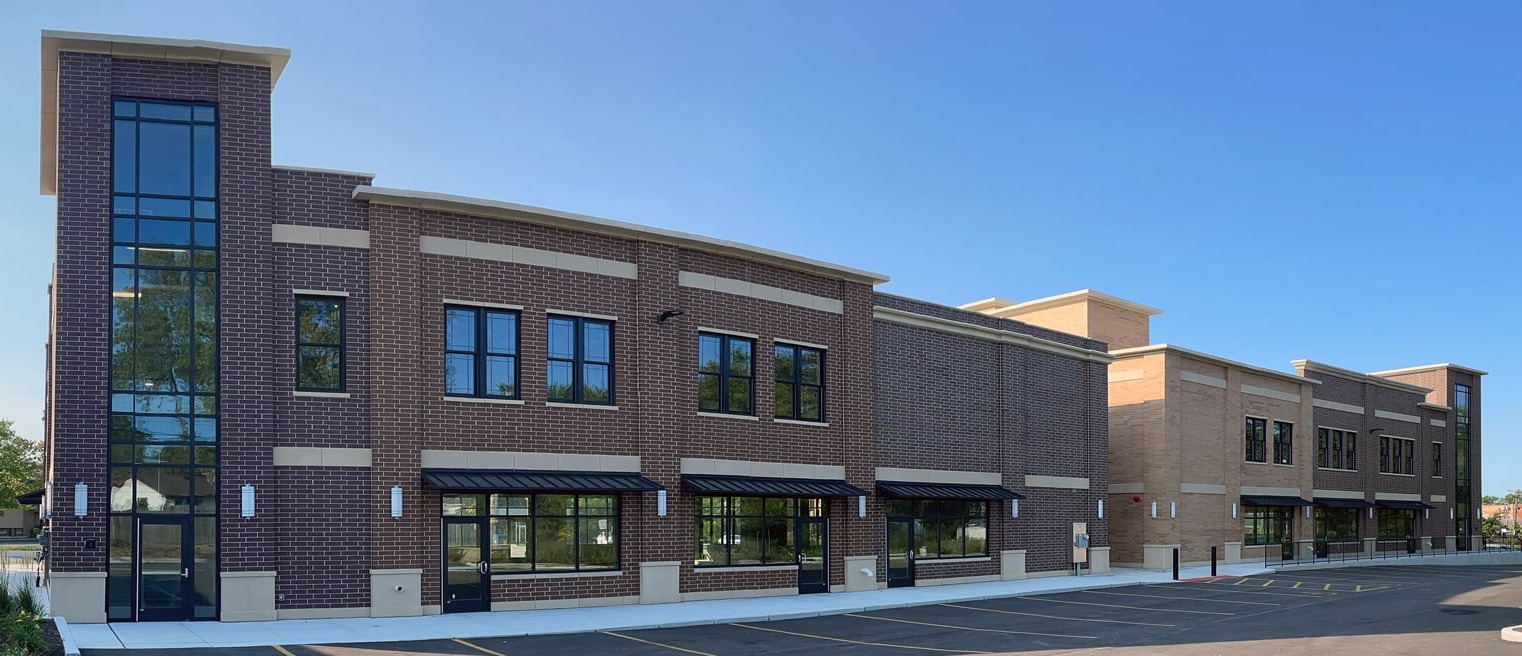 This commercial project represents an exciting redevelopment for the Village of Mundelein, Illinois. The site formally held the Historic Mundelein Village Hall, so great importance fell upon any development that was to follow. Hezner worked with Village representatives to create a methodical plan and process that would serve as a model for future developers considering the Village of Mundelein for their projects. The project concept closely followed the village’s comprehensive plan, and the neighborhood scale and context served as an inspiration for the resulting architectural approach. The new two story commercial structure is positioned on a .77 acre site and includes 23,000 square feet of leasable space for retail, restaurant, and office uses. Key features include ambitious masonry applications on all elevations, creative pedestrian spaces for circulation and gathering, off street parking for convenient access, and rooftop areas for social gatherings and entertainment space. One critical consideration for this development along Hawley St. was creating contextually appropriate public improvements that continued the existing village motif through the careful use of streetscape and lighting. The Village hopes this development will not only be a source of great pride for the developer and community, but an important catalyst that will ignite other development downtown Mundelein