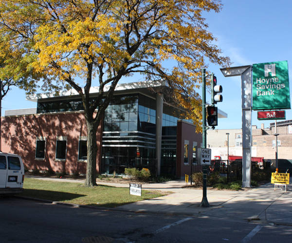 In 2008 Hoyne Savings Bank realized that their current branch banking facility was no longer meeting the needs of the bank. Their existing facility was larger than the required staffing needs of the facility and the utility bills were starting to reach un-justifiable levels. The Hezner Corporation work with the bank’s current program needs and designed a plan that would not only create and unique architectural appearance but save, and potentially make, the client money. The resulting facility was built on the banks current corner lot parking area while the existing facility remained fully functional. The new facility provides the bank with all the space required to accommodate their current program but also created an out lot that the bank could utilize as green space or sell in the future. While it was not important to the owner to achieve any LEED certification for this facility, the Hezner Corporation believes in utilizing practical and sustainable design, we believe that our designs should perform as well twenty years from now as they do today. Incorporation of masonry and glass exterior, pvc roofing high quality finishes, sound HVAC and well thought out lighting design means that the owner does not have to worry about the sustainability of the facility.