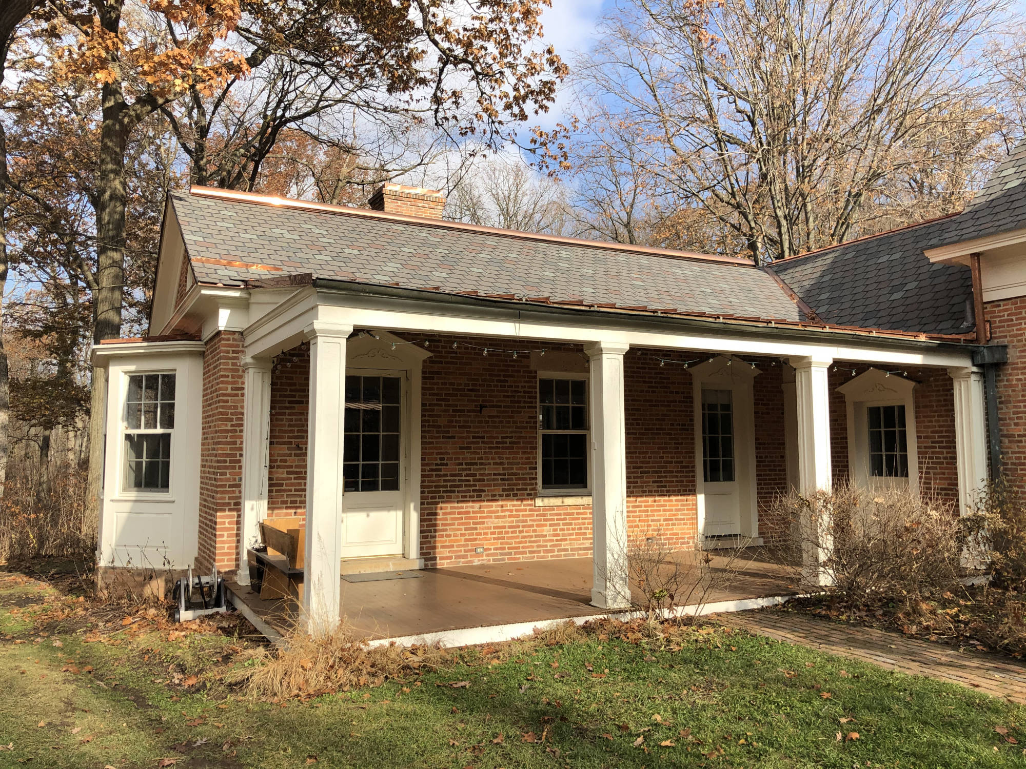 Lake County Forest Preserve District retained The Hezner Corporation to develop an approach to forensically analyze and develop construction documents for a roof replacement on the Brushwood Center, located in the Ryerson Forest Preserve, in Riverwoods, IL. The Brushwood center was originally the Ryerson family summer home and is designated on the National Historic Registrar as having historical significance. The planned replacement was a balancing act between historical interpretation and required technical corrective measures that resulted in a truly successful project for the Ryerson Forest Preserve.