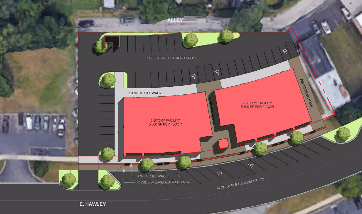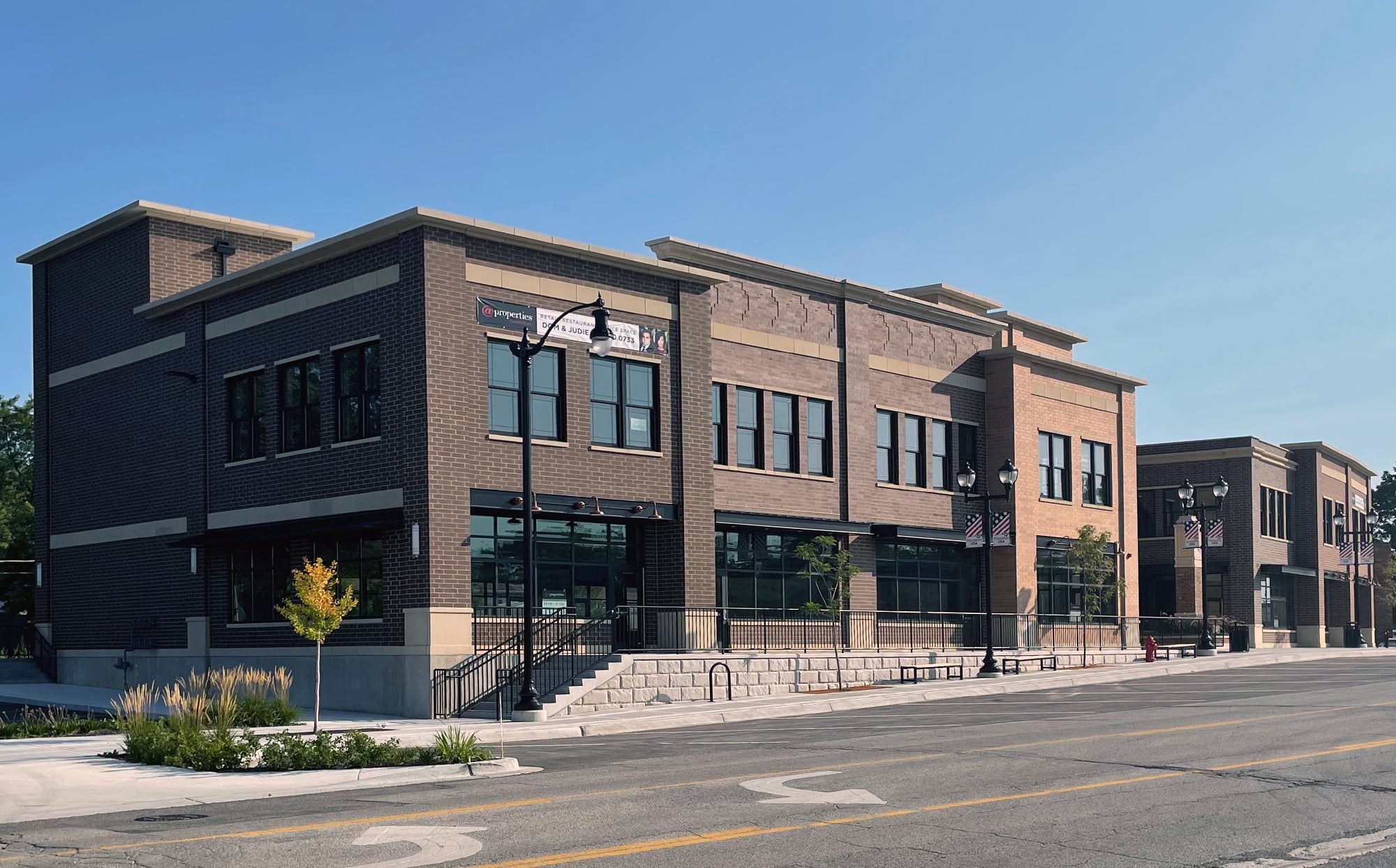 This commercial project represents an exciting redevelopment for the Village of Mundelein, Illinois. The site formally held the Historic Mundelein Village Hall, so great importance fell upon any development that was to follow. Hezner worked with Village representatives to create a methodical plan and process that would serve as a model for future developers considering the Village of Mundelein for their projects. The project concept closely followed the village’s comprehensive plan, and the neighborhood scale and context served as an inspiration for the resulting architectural approach. The new two story commercial structure is positioned on a .77 acre site and includes 23,000 square feet of leasable space for retail, restaurant, and office uses. Key features include ambitious masonry applications on all elevations, creative pedestrian spaces for circulation and gathering, off street parking for convenient access, and rooftop areas for social gatherings and entertainment space. One critical consideration for this development along Hawley St. was creating contextually appropriate public improvements that continued the existing village motif through the careful use of streetscape and lighting. The Village hopes this development will not only be a source of great pride for the developer and community, but an important catalyst that will ignite other development downtown Mundelein